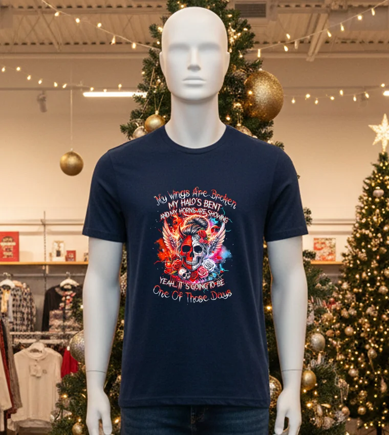 New York City, a whirlwind of ambition and cutting-edge style, is currently abuzz with the echoes of sustainable fashion movements and the ever-evolving street-style scene. Just last week, during a pop-up showcase for emerging designers in SoHo, I spotted a young woman, perhaps an aspiring musician or a burgeoning poet, confidently navigating the fashionable crowd. She wasn’t draped in designer labels; instead, her outfit was simple yet profoundly striking: a pair of well-worn vintage jeans, chunky Doc Martens, and that T-shirt. The words My Wings Are Broken My Halos Bent And My Horn Are Showing Shirt seemed to glow under the gallery lights, a subtle rebellion in a city that often demands perfection. She wasn’t hiding; she was owning her truth, perfectly embodying the current trend of authentic self-expression that’s seen everywhere from the runways to the L train. This tee isn’t for the person trying to fit in, but for the one who knows their beautiful imperfections are their strength. It’s for the go-getter who’s had a rough week but still shows up, ready to conquer, or for anyone attending a poetry slam in the East Village, a DIY craft fair in Brooklyn, or even just grabbing a bagel in the morning, wanting to convey a powerful message without saying a word.