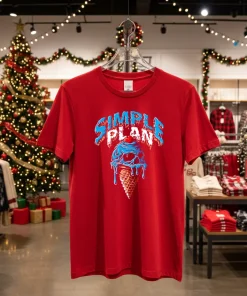 Remember that buzz when Billie Eilish wore that vintage band tee to the Met Gala after-party last year? It wasn’t the exact design, but it sparked a whole conversation about pop-punk nostalgia making a high-fashion comeback. That’s exactly where the Simple Plan Ice Cream Shirt comes in. Imagine it: You’re scrolling through TikTok, seeing all the “dopamine dressing” trends for summer in NYC – bright colors, playful patterns, a real return to joyous, expressive style. Suddenly, a friend texts you, “Hey, planning to check out the new pop-up art installation in Chelsea this Saturday, wanna come?” Your mind immediately jumps to your Simple Plan tee. It’s not just a shirt; it’s a statement that says, “Yeah, I love art, but I also blast early 2000s anthems in my car.” This tee is perfect for those weekend gallery hops, brunch with friends in the West Village, or even just grabbing a coffee before hitting up the latest sustainable fashion market downtown. It taps into the current wave of “thrift-flip aesthetics” and “Y2K street style” that’s dominating youth culture, especially in a city like New York where personal expression is king. It’s for anyone who misses the good old days of Vans Warped Tour, but also appreciates the subtle nod to contemporary cool that this design offers. It’s about owning your personal style in a world obsessed with fleeting trends, proving that true style is timeless.