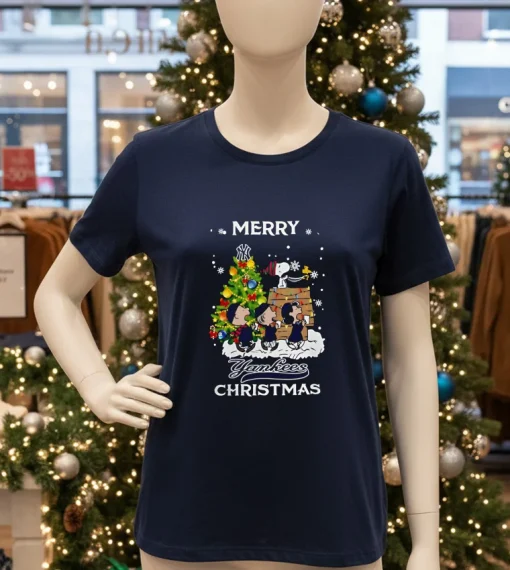 Picture this: It’s early December in New York, and the air is buzzing with holiday cheer, a perfect backdrop for the city’s vibrant fashion scene. Just last week, I caught a glimpse of a local influencer, @NYCFashionista, on my feed, styling a vintage Yankees tee with a chic oversized blazer – a nod to the growing “athleisure meets high fashion” trend that’s dominating downtown. She talked about embracing nostalgic graphics, a move I’ve been eyeing. So, when a friend mentioned the upcoming “Holiday Lights & Street Eats Festival” in Bryant Park, I immediately thought, “What do I wear that screams festive, local, and me?” The answer hit me like a grand slam: the 2024 New York Yankees Snoopy And Friends Merry Christmas Shirt. It’s not just a shirt; it’s a whole mood. This isn’t just about Yankees pride, which, let’s be honest, is a year-round NYC staple; it’s about blending that iconic pinstripe passion with the undeniable, heartwarming charm of Snoopy and the Peanuts gang, all wrapped up in a cozy Christmas package. The festival, with its twinkling lights and artisanal food stalls, is the perfect stage. I can already imagine sipping a hot cocoa, Snoopy’s joyful dance on my chest, feeling perfectly integrated into the city’s “casual cool” aesthetic that’s been all over the runways – a seamless blend of “streetwear comfort” and “holiday glam.” It taps into that “gender-neutral styling” everyone’s loving, too; it’s effortlessly chic for anyone. This shirt isn’t just for a game; it’s for capturing the spirit of a New York Christmas, whether you’re ice skating in Central Park, browsing the holiday markets, or simply enjoying a festive stroll down Fifth Avenue. It’s for anyone who wants to celebrate their fandom and the holidays with a touch of playful, timeless style.