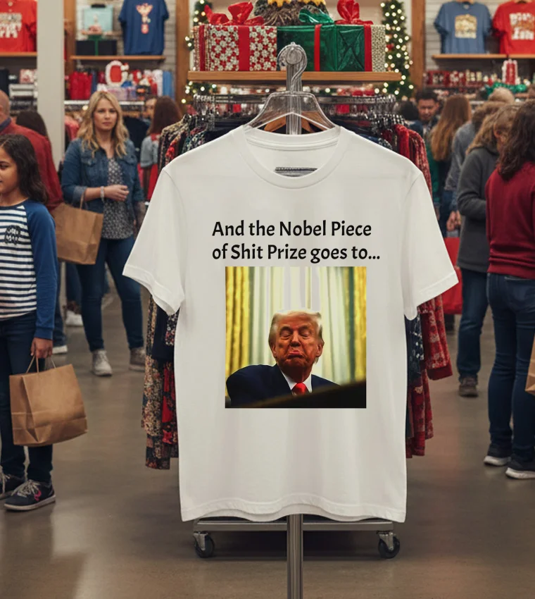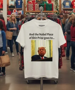 Ready to make your statement? Why blend in when you were born to stand out? Get your own And The Nobel Piece Of Shit Prize Goes To Trump T Shirt today! We’re committed to delivering high-quality, impactful tees directly to your door, fast. Express yourself with Yoyoshitrs.