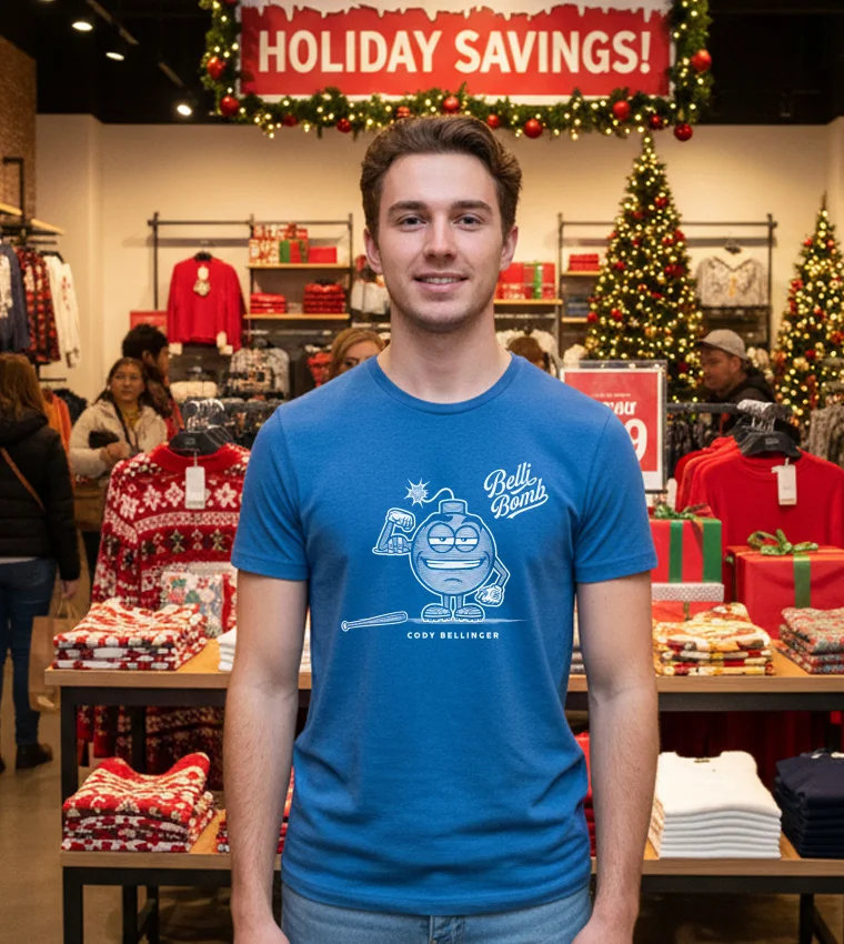 Let’s zoom in on that fantastic, eye-catching design. It’s not just a logo; it’s a conversation starter, a little wink to fellow fans. The clever graphic, with its “Belli Bomb” playfulness, stands out without being loud, offering a subtle nod to baseball’s explosive moments. This isn’t just another mass-produced tee; it’s designed to bring a smile to your face and those around you. And the material? Oh boy, you’ll love it. Made from 100% American Cotton, it’s incredibly soft against the skin, offering just the right amount of stretch and breathability for those long summer days or layering into fall. It feels like that favorite worn-in tee you’ve cherished for years, right out of the package. It’s got that perfect vintage, American streetwear feel that looks great paired with anything from cargo shorts to tailored trousers for a smart-casual twist. Why wait? Buy now and add that perfect touch of playful style to your wardrobe!