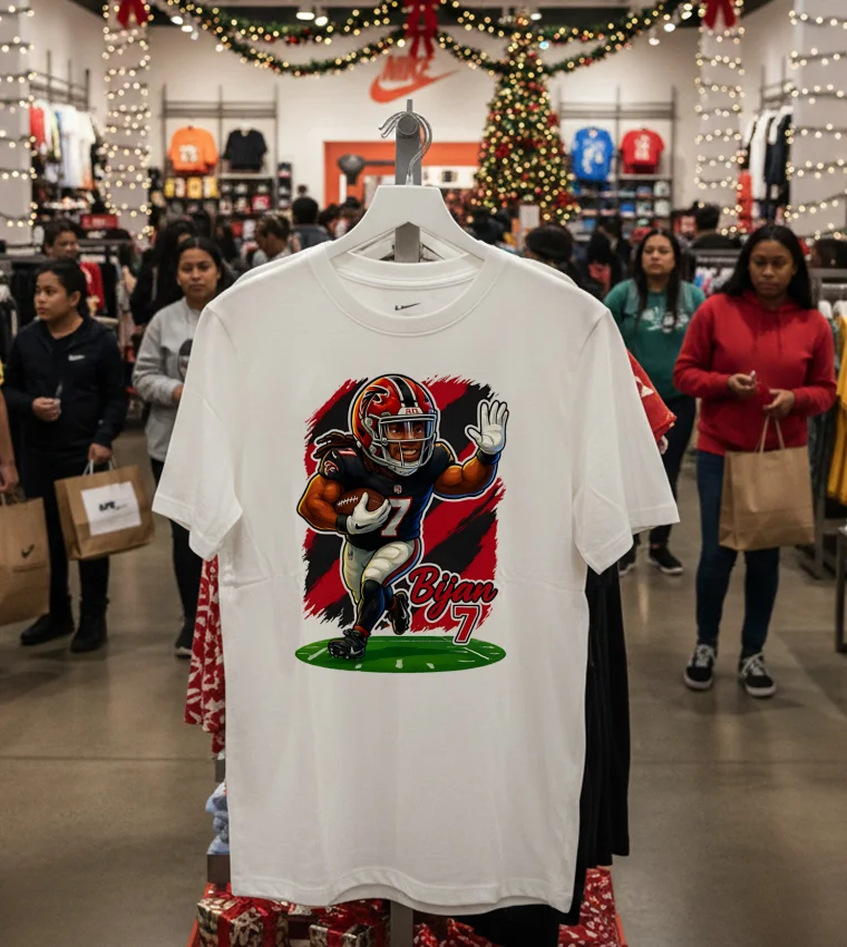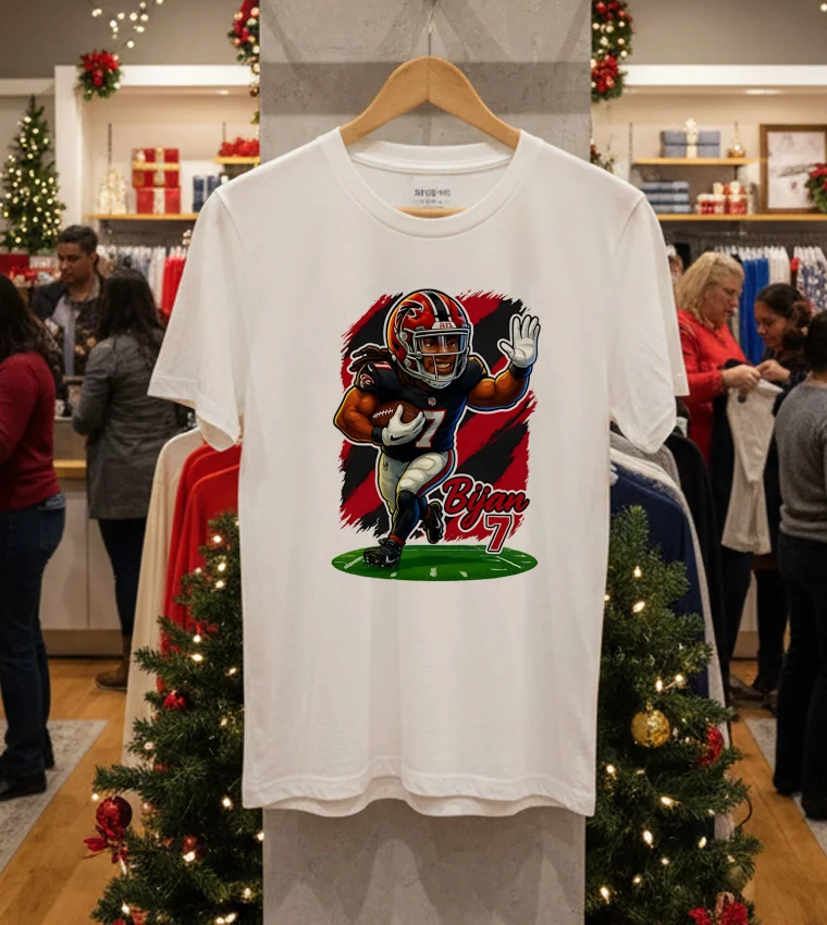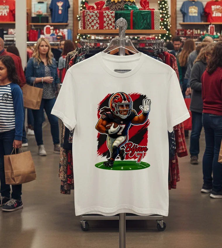 Let’s really look at the design. The caricature isn’t just a basic drawing; it’s a witty, animated take on Bijan Robinson, capturing his dynamic energy with playful exaggeration. It’s that blend of humor and recognition that makes people smile, perhaps even prompting a “Nice shirt!” from a fellow fan. This isn’t just fan merchandise; it’s wearable art. When you wear it, you’re not just supporting a player; you’re showcasing your unique style and a bit of playful confidence. There’s a certain pride in donning something that sparks joy and connection. To keep that vibrant design looking sharp, a simple cold wash and hang dry will do wonders. It’s designed for longevity, a trusty companion for many seasons to come – a wardrobe staple, not just a fleeting trend.