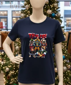 Remember that viral moment during last year’s NYC Fashion Week street style scene? Where a major celeb – let’s say, a musician known for their bold fashion choices – was spotted rocking an unexpected, vintage-inspired graphic tee with a subversive twist? That’s exactly the kind of vibe we channeled when designing the Christmas Thug Life Movie Characters Shirt. Imagine, it’s a brisk December evening in Brooklyn, maybe you’re headed to a friend’s low-key holiday gathering in Bushwick, or perhaps you’re just grabbing a craft beer at a pop-up market in the Lower East Side. You want to feel festive, but without resorting to those overtly “ugly” sweaters. This shirt? It’s your secret weapon. It’s got that nostalgic pop culture edge, merging iconic movie characters with a playful “Thug Life” holiday spin – think less Santa’s workshop, more street-smart cool. With the ongoing streetwear revival dominating the city’s fashion landscape, and the conversation around gender-neutral styling hotter than ever, this tee hits all the right notes. It’s perfect for anyone looking to stand out at a casual holiday party, make a statement while gift shopping, or just express their unique personality during the festive season. It taps into that desire for something authentic, something that whispers “I’m festive, but I’m also me,” a true reflection of today’s dynamic NYC fashion scene where individual expression reigns supreme.