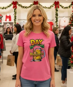 Let’s zoom in on that iconic graphic: ‘Day Drinking In Progress.’ It’s not just words; it’s a whole mood, right? The font itself, a little retro, a little worn, tells a story without trying too hard. This isn’t some stiff, iron-on print that’ll crack after one wash. Oh no, it’s integrated, feels like part of the fabric, soft to the touch. It’s got that lived-in feel from day one, like your favorite band tee that’s been through a hundred concerts. That’s the magic! Made from premium cotton, it’s incredibly soft against your skin, truly breathable – essential for those unexpected warm days or just kicking back. Its relaxed fit drapes just right, not too baggy, not too tight, giving you that ‘effortlessly cool’ aesthetic. Pair it with distressed denim and sneakers for a classic American look, or even throw it under an open plaid shirt for a layered, rugged charm. Seriously, it just works! Ready to elevate your casual game? Buy now and embrace the good times! Or, hey, it’s the perfect gift for that friend who always knows how to lighten the mood!