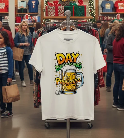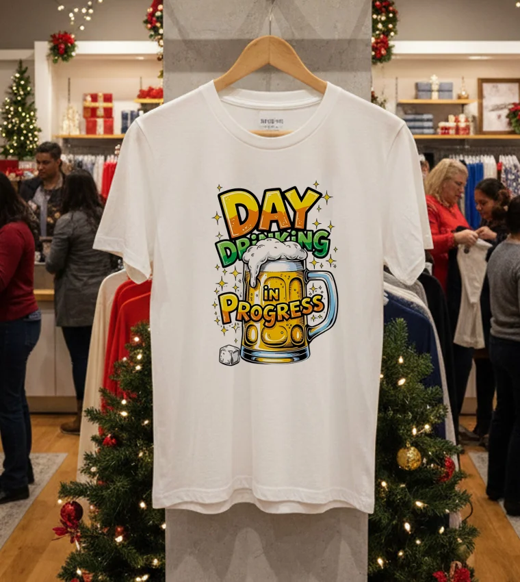 New York’s fashion scene is buzzing, not just with haute couture on the runways, but with a vibrant embrace of authentic street style and ‘effortless cool’ that’s redefining what it means to look good. Just last month, during those pop-up events down in SoHo, you couldn’t miss the trend: people ditching the stuffy, embracing comfort with a side of witty charm. Remember that viral moment with the street style blogger pairing a vintage graphic tee with tailored shorts? It sent ripples through every corner of the city, from Brooklyn’s hippest coffee shops to West Village brunch spots. This shift towards expressive, comfortable apparel is everywhere, especially as we see more and more folks gravitating towards sustainable fashion choices and pieces that truly tell a story. That’s exactly what I was thinking when I saw my friend, Mark, totally rocking his new Day Drinking In Progress Beer Shirt at a rooftop barbecue last weekend. Mark, an ordinary guy from Astoria, isn’t usually one for bold fashion statements. But he looked so relaxed, completely owning the ‘casual chic’ vibe that’s everywhere right now. It wasn’t just a shirt; it was an attitude. He was the guy who knew how to have a good time, whether it was an impromptu gathering by the Hudson or just chilling after a long week. It’s for those moments when you want to make a statement without saying a word, when you’re all about those easygoing, good-time vibes. This isn’t just about a shirt; it’s about joining a movement of expression and comfort that’s perfectly aligned with today’s fashion-forward, yet laid-back New Yorker. Perfect for a backyard bash, a chill day at the park, or even a low-key concert on Governor’s Island. It’s for anyone who appreciates a good laugh and a relaxed fit, for the weekends spent unwinding or the spontaneous meet-ups that turn into unforgettable memories. The recent surge in athleisure wear and versatile pieces really highlights how much we all crave clothing that keeps up with our dynamic lives, from a morning coffee run to an evening social gathering. This shirt fits right in, a true emblem of modern, fun-loving American style.
