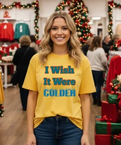 Just last month, during the tail end of New York Fashion Week, with the city still baking under an unexpected September heatwave, I scrolled past a tweet from a well-known street style influencer, @NYCThreads. “Another day, another layer of sweat during NYFW,” she quipped, “Wishing for fall fashion, but still stuck in summer purgatory! #ColderWeatherPlease #NYFWVibes.” And honestly, who among us didn’t feel that to our core? I immediately thought of the I Wish It Were Colder Shirt. This isn’t just a tee; it’s a silent, shared groan among urban dwellers, a collective sigh of longing for that crisp autumn air. Imagine, Sarah, a graphic designer in DUMBO, stuck on a sweltering subway platform, dreaming of chunky sweaters and pumpkin spice lattes. She sees that tweet and a lightbulb goes off. This shirt isn’t just for fashionistas; it’s for anyone enduring the “urban heat island” effect, navigating a city that feels like a giant oven. It perfectly encapsulates the current transitional dressing dilemma we’re all facing, bridging the gap between summer’s grip and fall’s promise. With sustainable cotton graphic tees becoming a major streetwear trend and vintage-inspired fashion dominating Gen Z aesthetics, this shirt isn’t just timely, it’s a total vibe. It’s an effortless chic way to make a statement without saying a word, a nod to conscious consumerism by choosing a piece that truly reflects your current state of mind.