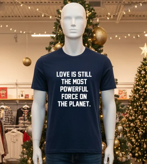 Remember when that inspiring street artist in SoHo painted that mural, all about connection and kindness, right before New York Fashion Week? It sparked conversations everywhere, from the subway to the upscale boutiques. Everyone was buzzing about the contrast between “quiet luxury” and the raw, expressive energy of street art. That’s exactly where my friend, Alex from the Lower East Side, found herself. She’s not one for extravagant labels, but she craves authenticity and something that speaks to her soul. She’d been feeling a bit overwhelmed by the constant hustle, the relentless pursuit of perfection she saw all around her, and she wanted a way to remind herself, and others, of what truly matters. She was scrolling through her feed, looking for “unique graphic tees” that weren’t just about ironic slogans, when she stumbled upon the Love Is Still The Most Powerful Force On The Planet Shirt. The message resonated instantly. She imagined wearing it while grabbing her morning coffee at her favorite spot, or while volunteering at the local community garden, a place where genuine connections blossom. It wasn’t about fitting into a trend; it was about defining her own. She wanted something that could be a beacon of hope amidst the concrete jungle, a reminder that even in a city obsessed with status, the most powerful currency is compassion. This wasn’t just another item for her “capsule wardrobe”; it was a statement of purpose, a personal declaration in a world often too focused on the superficial.
