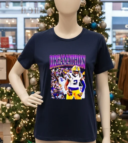 Let’s talk about that design, “Dreamathon Bayou Dreams.” It’s not just an image; it’s a whole mood. The intricate details evoke the mystique of the Louisiana bayou blended with the vibrant energy of LSU football. Wearing this isn’t just supporting a player; it’s carrying a piece of that unique culture, that fight, that pride, wherever you go. It’s a silent nod to fellow fans, an instant connection. There’s a psychological comfort in wearing something that means so much to you, a sense of belonging. To keep that pride vibrant, a little care goes a long way: machine wash cold, inside out, and tumble dry low. This tee isn’t just for game day; it’s your loyal companion for every casual outing, every memory made, every dream chased.