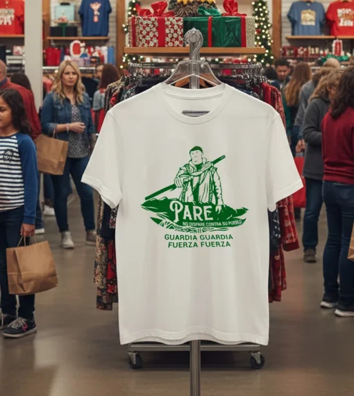 You know, I was scrolling through my feed the other day, catching up on the latest buzz from New York Fashion Week – even though it’s technically over, the street style trends are still everywhere! Everyone’s talking about this ‘conscious fashion’ movement, where what you wear says something, you know? It’s not just about the brand; it’s about the message. And then it hit me: my Pare No Dispare Contra Su Pueblo Guardia Guardia Fuerza Fuerza Shirt isn’t just a cool graphic tee; it’s a statement, perfect for this moment. I remember seeing a clip from a local community leader, speaking at a rally downtown, maybe near Washington Square Park, emphasizing unity. He wasn’t wearing this shirt, but his words, ‘We must protect our own, uplift our neighbors,’ echoed the sentiment exactly. This tee, with its powerful Spanish message – ‘Stop Don’t Shoot Against Your People Guard Guard Force Force’ – resonates deeply with so many conversations happening right now. Think about the surge in community-led initiatives, the push for local support, and even the “no-code” fashion brands popping up, allowing creators to put their voice directly onto garments. It’s all about authenticity and impact. This isn’t some fleeting TikTok trend; it’s a message with gravitas. I wore mine to a pop-up market in Bushwick last weekend, where independent designers were showcasing their sustainable collections. People kept giving me nods, some even stopped to ask about the shirt. It sparked conversations, positive ones, about community safety and collective strength. It’s a subtle nod to the enduring vintage aesthetic, but with a thoroughly modern, activist edge. It felt so good to wear something that felt truly relevant, cutting through the noise of fast fashion and making a clear statement. It’s for anyone who believes in community, peace, and using their voice – or their shirt – to advocate for a better world. It’s more than just fabric; it’s a piece of that collective spirit, you know?