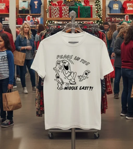 Remember that buzz after the last New York Fashion Week about designers embracing “humor in high fashion”? Or maybe it was that New York Times article discussing how people are using everyday street style to make subtle, clever statements. It got me thinking about pieces that truly break the mold, pieces like the Peace In The Middle East Funny Cartoon Shirt. This isn’t just a tee; it’s a conversation starter, a little wink to the world. It’s for the person who loves the vibrant, sometimes chaotic energy of NYC, but also deeply appreciates a moment of levity and smart wit. You see it on Sarah, an aspiring architect from Bushwick, who’s usually sporting a minimalist aesthetic but felt a connection when she saw a segment on a morning show about how fashion can carry a message, but with a lighter touch. This tee fits right in with the city’s current gender-fluid fashion vibe, where personal expression trumps rigid rules, making it a perfect sustainable fashion choice for those moving away from fast trends. It’s not about being overtly political; it’s about finding common ground through humor, a refreshing take on dopamine dressing that’s not just bright colors but clever thinking. You could easily spot this amidst the oversized silhouettes and vintage finds at a pop-up market in Williamsburg, or paired with upcycled accessories at a cool art gallery opening. It’s for anyone looking to add a touch of playful intelligence to their wardrobe, embracing the bold graphics trend without sacrificing substance.