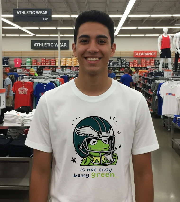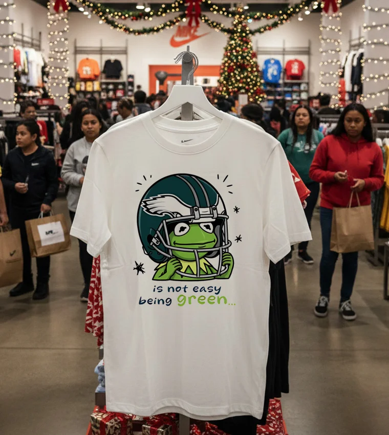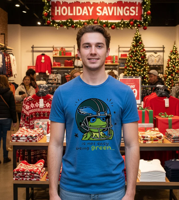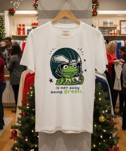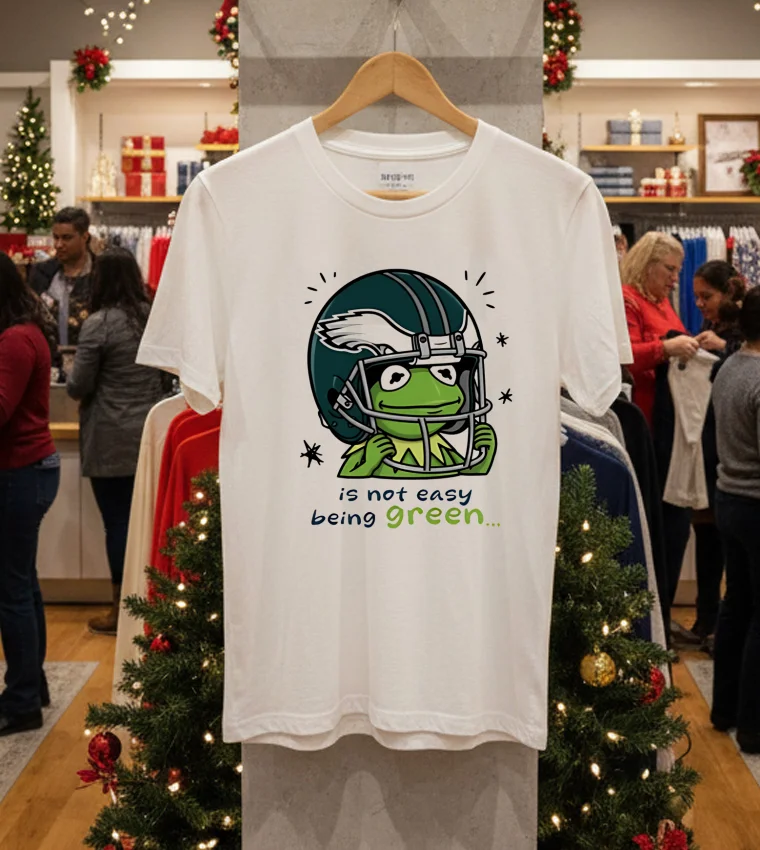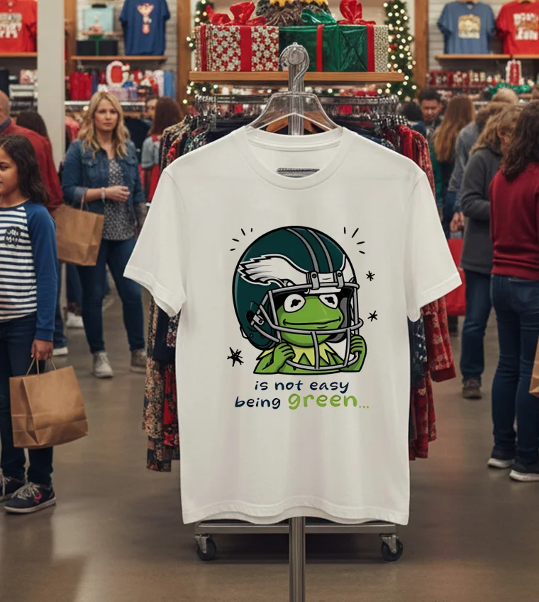Remember when a major fashion influencer rocked a vintage sports tee during New York Fashion Week? Paired with tailored trousers and chunky sneakers – suddenly, game day gear was street style royalty. That moment sparked something in me. Watching from my tiny Brooklyn apartment, I thought, ‘I need that vibe.’ The Eagles season was approaching, and the buzz about their stadium upgrades was everywhere. It wasn’t just about football; it was connecting to that authentic, underdog spirit that feels so right in New York. It’s about blending passion with your look. Heading out for brunch in the West Village, I pictured myself walking through those iconic streets, passing pop-up shops featuring sustainable fashion. The Philadelphia Eagles Is Not Easy Being Green Cartoon Shirt popped up in my search. The ‘Is Not Easy Being Green’ cartoon immediately caught my eye; it’s got that classic, slightly rebellious vibe that resonates with the current ‘anti-establishment chic’ trend. This isn’t just about a logo; it’s a statement that transcends sports, fitting perfectly with the ‘quiet luxury’ movement where personal expression is paramount. With the emphasis on gender-fluid fashion and accessible streetwear, this graphic tee is a versatile staple. I imagined wearing it layered under an oversized blazer, or casually with my favorite distressed jeans – perfect for a Madison Square Garden concert or coffee in SoHo. It’s more than just a shirt; it’s an identity.