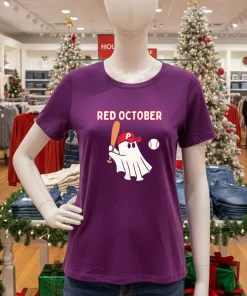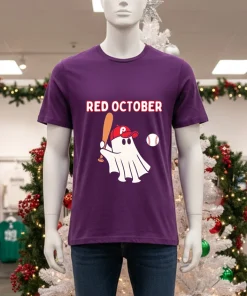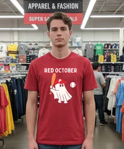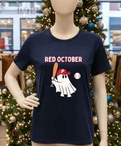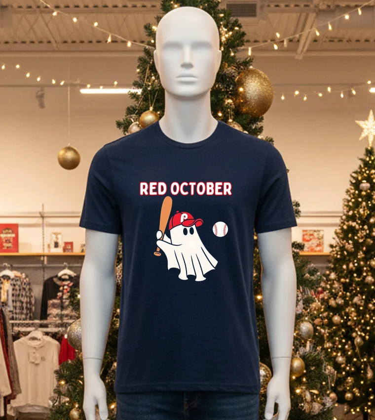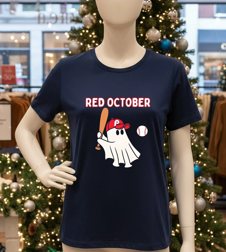 Remember that viral moment during New York Fashion Week when a quirky graphic tee unexpectedly shook up the runway? It sparked a city-wide conversation: sometimes, the most profound fashion statements speak to your soul, to your passions. And for a Philly fan, what’s more soulful than October baseball? As leaves turn and crisp autumn air whispers of Halloween, a buzz is building for the Phillies playoffs. Analysts predict a thrilling “Red October,” uniting the city. Imagine walking through SoHo, past boutiques showcasing oversized streetwear and vintage graphic tees, but your heart beats for Philly. You need something that screams “Phanatic” spirit, but also embraces spooky fun. That’s precisely why the Phillies Red October Ghost Halloween Baseball Shirt is the must-have item. It’s a declaration. Whether you’re heading to Citizens Bank Park, hosting a Halloween watch party, or showing support in Brooklyn, this tee is your uniform. It perfectly blends the thrill of postseason baseball with playful Halloween spookiness. Forget sustainable fashion or gender-neutral clothing debates – the real trend is authentic self-expression. This shirt isn’t about fleeting fads; it’s celebrating your team and holiday, merging two beloved American traditions into one stylish, spirited statement. For unforgettable game nights and trick-or-treating adventures, it’s perfect.