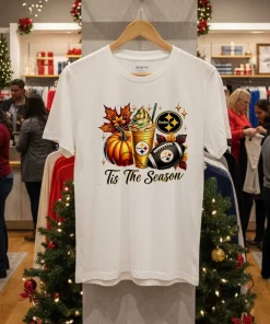 You know, fashion in New York today is all about making a statement, embracing individuality, and sometimes, it’s about a little bit of playful nostalgia, especially when you see what’s hitting the runways during Fashion Week. Just last week, I was scrolling through my feed, seeing all the buzz about sustainable fashion and expressive graphics, and then I saw a post from a friend in Pittsburgh about the Steelers’ upcoming Halloween-themed game. It instantly clicked: the Pittsburgh Steelers Tis The Season Halloween Shirt isn’t just a piece of fan gear; it’s a whole mood! Imagine this: you’re planning for the big Halloween weekend, maybe catching a pumpkin patch pop-up in Brooklyn, or hitting a rooftop bar for a festive fall gathering. This isn’t just for the die-hard fan glued to their couch for every snap (though, let’s be real, it’s perfect for them too!). This T-shirt is for anyone who wants to blend that autumn spirit with some genuine team pride, a nod to both the spooky season and gridiron glory. It’s for the person who appreciates a unique, conversation-starting piece in their wardrobe amidst all the minimalist streetwear and “quiet luxury” trends we’re seeing. It’s perfect for that casual Friday at the office, a college game day tailgate, or even just chilling at home watching “Hocus Pocus” with a bowl of candy corn. Forget your typical graphic tees; this one brings personality and passion.