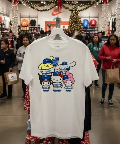 Remember that buzz a few months back when Anna Wintour was spotted at a low-key street festival in DUMBO, just observing the crowd’s fashion choices? Everyone was talking about how she seemed intrigued by the blend of high-end and everyday, the unique ways New Yorkers were expressing themselves. That’s the vibe exactly where this tee fits in. Imagine me, Jess, just a regular graphic designer navigating the bustling streets near the Garment District, scrolling through my feed and seeing glimpses of what’s hot right now – from sustainable, upcycled fashion making waves at local pop-ups to the “dopamine dressing” trend exploding on TikTok. My friend, a die-hard Dodgers fan, has been counting down the days to 2025, practically vibrating with anticipation. He’s already planning his World Series party, even though it’s still a ways off! But then I saw this shirt. It hit me: it’s not just about a team, or a cute character; it’s about that feeling of hope, that collective joy you share with a city. It’s about taking something traditional, like baseball fandom, and giving it that unexpected, playful twist, much like how NYC street style constantly reinvents itself. With athleisure still dominating and vintage revival a major trend, this Sanrio Hello Kitty X Dodgers World Series Champion 2025 Shirt isn’t just a tee; it’s a statement about blending your passions. It’s for the everyday fan, the fashion-conscious New Yorker who loves a story behind their threads, who appreciates a nod to pop culture, and who knows a winning team when they see one – or, in this case, anticipate one!
