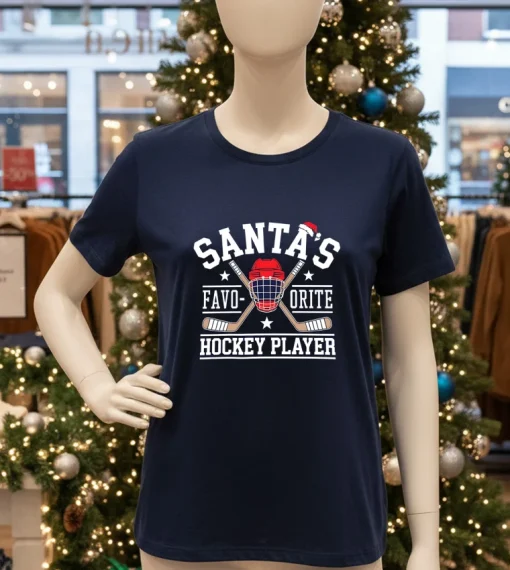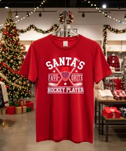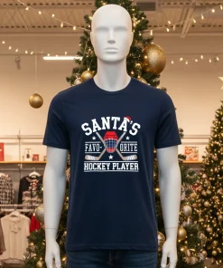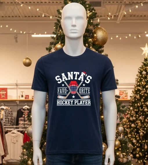 Now, let’s talk about the design itself. That vibrant, cheerful graphic of “Santa’s Favorite Hockey Player” isn’t just printed on; it’s part of the shirt’s very soul. It’s got that classic, slightly retro feel, but with a crisp, modern finish that makes it pop. This isn’t just some flimsy iron-on that’ll peel after a wash or two. It’s designed to withstand the test of time and countless celebratory high-fives. Wearing this shirt isn’t just about fashion; it’s a declaration. It evokes a sense of playful pride, a quiet boast of passion for the ice. Picture Liam, beaming, knowing he’s Santa’s top pick on the ice. To keep that festive magic alive, just remember to wash it inside out in cold water and tumble dry low. It’s a simple step to ensure this beloved tee remains a faithful companion for many holiday seasons to come, always ready to spark a smile and a conversation.