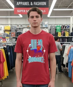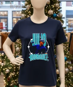 What really sets this shirt apart, though, is the design itself. The graphic of Julio Rodriguez isn’t just a basic print; it’s a dynamic, almost artistic capture of his power and swagger on the field. The colors pop without being garish, perfectly embodying that electric energy he brings to every game. When I put it on, I don’t just feel like I’m wearing a shirt; I feel a surge of that underdog pride, that belief in the Mariners. It’s a statement piece that subtly says, “Yeah, I’m a fan, and I’ve got good taste.” To keep that vibrant print looking sharp, I always turn it inside out before washing on cold and then hang it to dry. It’s a small ritual, a way of preserving that feeling of connection, ensuring this shirt remains my trusted companion for every home run, every stellar catch, and every casual outing.