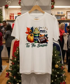 Remember that viral moment earlier this year when everyone from fashionistas to football fanatics started embracing personalized, bold graphic tees as the ultimate street style statement? It wasn’t just about what designer you were wearing; it was about what you said with your clothing. Here in New York, we saw celebrities like Travis Kelce stepping out in vintage band tees, sparking a massive trend where “comfort meets cool” became the unofficial motto of the season. This fall, that energy is still buzzing, but with a festive twist. Take my friend, Dave. He’s a die-hard Seahawks fan, but also loves a good Halloween party. He was agonizing over finding something that wasn’t a full-blown costume but still screamed “holiday spirit” and “my team!” He’d been scrolling endlessly, feeling a bit defeated by all the generic stuff out there, until he stumbled upon the Seattle Seahawks Tis The Season Halloween Shirt. It was like the universe heard his dilemma. This shirt isn’t just about cheering for your team; it’s about seamlessly blending your fandom with the spookiest, funnest time of the year. Imagine rocking this to your friend’s annual pumpkin carving contest, or to a game day tailgate that happens to fall on the last weekend of October. It perfectly captures that vibe of personal expression that’s been so hot in current fashion, showing off your passions with a dash of unique style. Forget those basic “costume tees”; this is authentic, spirited, and perfectly timed for all the autumn festivities, from apple picking to trick-or-treating with a Seahawks game on in the background.