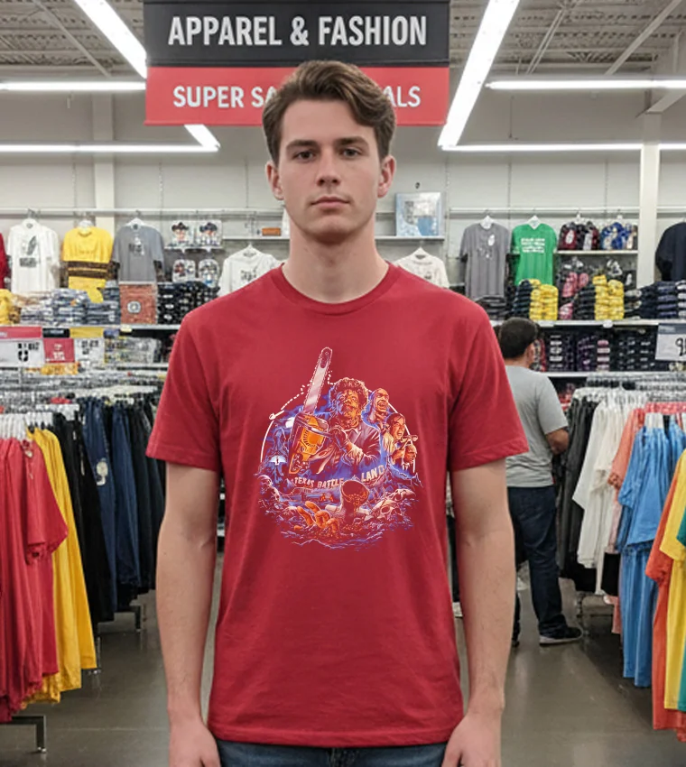 Ready to rock your unique style? Don’t just follow trends, set them with the Texas Chainsaw Massacre Texas Battle Land T Shirt! Why settle for ordinary when you can have extraordinary comfort and killer design, delivered pronto? We guarantee a high-quality, beautiful tee, every time. Grab your Yoyoshitrs tee today!